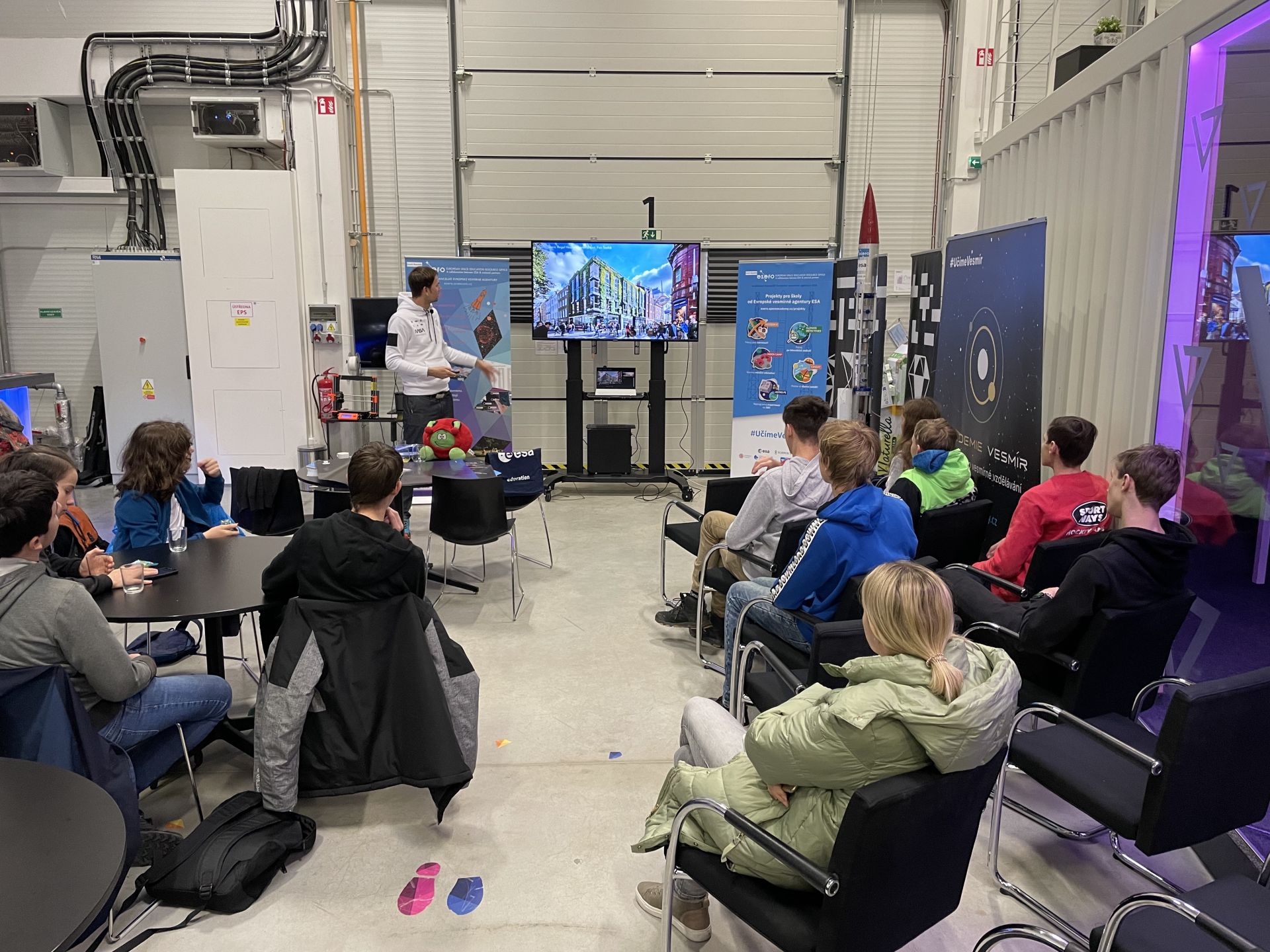 Jednu takovou základnu navrhl vesmírný architekt Tomáš Rousek z architektonického studia XTEND Design. Právě po jejím povrchu se mohli studenti zapojení v soutěži projít, a načerpat tak inspiraci pro návrh své vlastní lunární základny. Součástí programu byla i diskuze nad tématem dobývání vesmíru a ukázku 3D tisku od Prusa Research.